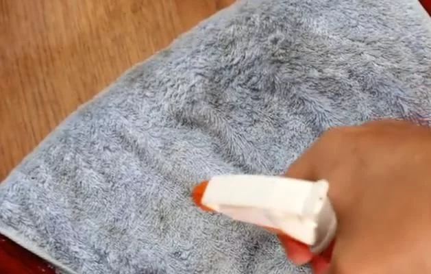 接下来,我们来兑清洁液。首先,准备一个喷雾瓶。喷雾瓶里面装一些清水,加入一点食用盐,然后再加入一些洗洁精。把兑好的清洁液喷洒在。包着扫把的毛巾上面。