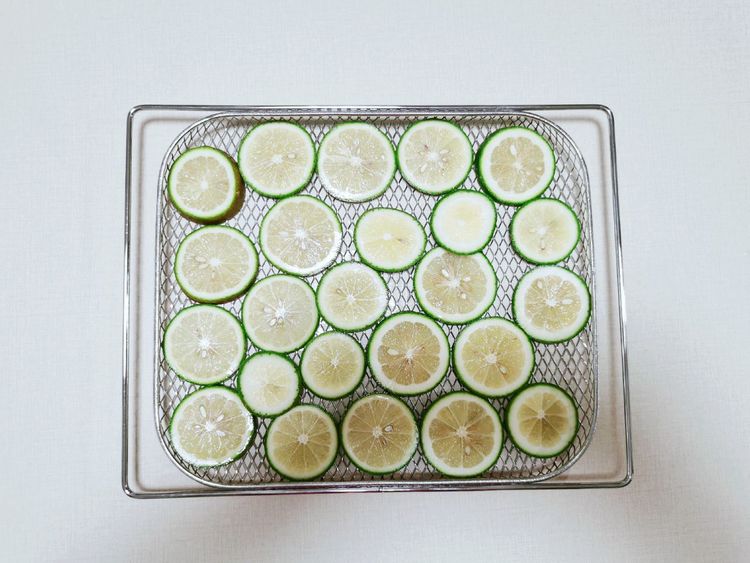 2、柠檬片一定要烤制比较干,储存的时间才会比较久,这样制作出来的饮品味道也会更加浓郁。