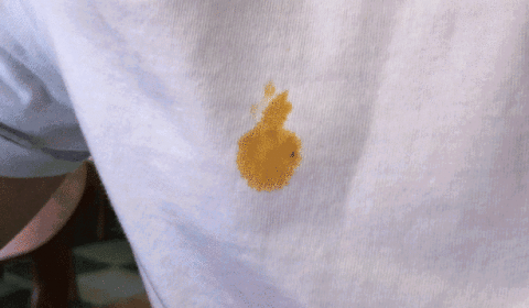 你会发现,白衣服干净如初。